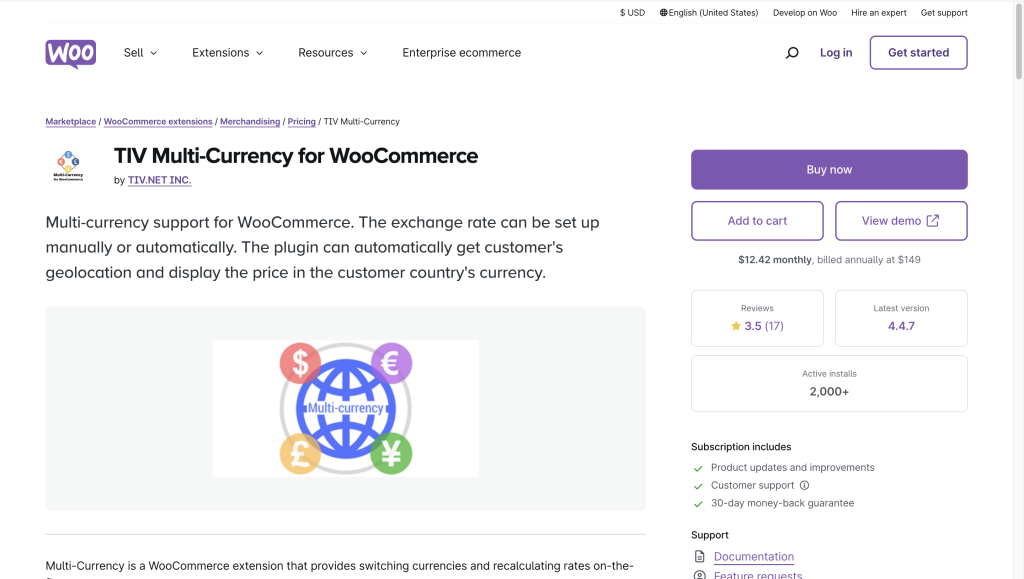 This comprehensive plugin offers automatic exchange rate updates, geolocation-based currency switching, and broad payment gateway compatibility.